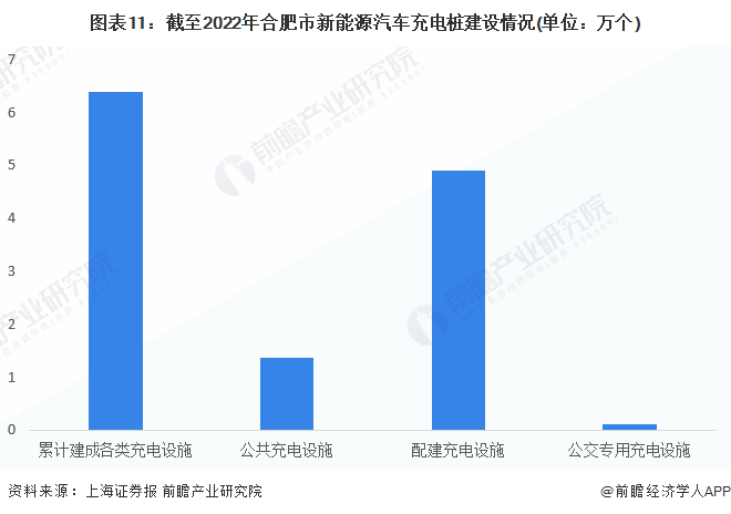 在新能源汽车配套产业方面,合肥基础建设较为全面,截至2022年5月,合肥市已累计建成各类充电设施6.4万个:其中公共充电站860座,公共充电设施1.37万个,配建充电设施4.9万个;公交专用充电设施0.12万个。