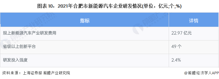 根据上海证券报披露的数据,近年来,合肥市较为注重新能源汽车产业的研发,持续推动“科创+产业”共同发展,打造“双链协同”发展体系,在新能源汽车整车制造及电池、电机、电控、智能网联等关键领域技术不断突破。2021年,规上新能源汽车产业研发费用22.97亿元,研发投入强度2.4%。推动企业与高校院所协同合作,创建省级以上创新平台49个。