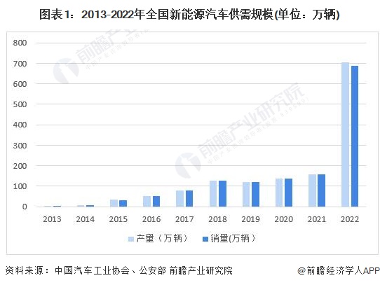 新能源汽车是我国应对气候变化、推动绿色发展的战略举措,在政策和市场需求的推动下,我国新能源汽车产销量双双增长,2022年,全国新能源汽车实现产量705.8万辆、实现销量688.7万辆。根据国务院印发的《新能源汽车产业发展规划(2021-2035年)》,未来几年我国新能源汽车行业仍将保持高速发展态势。