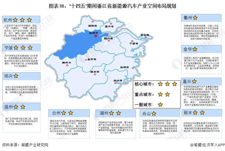 在新能源汽车技术路线多头并进之际,浙江省前瞻性规划布局新能源汽车产业发展方向,2021年4月8日,浙江省发改委发布《浙江省新能源汽车产业发展“十四五”规划》,提出要坚持产业集群发展,围绕整车制造优化布局产业链和创新链,着力打造环杭州湾汽车产业集群,积极建设温台沿海汽车产业带,特色推进各地方汽车产业协同发展,逐步形成“一湾一带多基地”的专业化、协作化、联动化的新能源汽车空间发展格局。