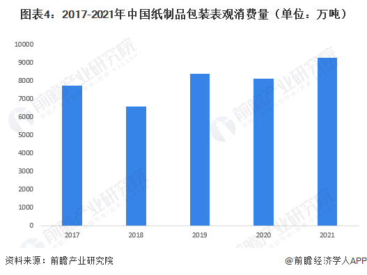2021年中国纸制品包装表观消费量约为9266万吨
