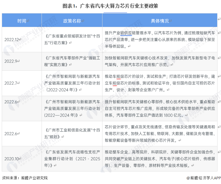 ——广东省出台政策支持汽车大算力芯片的发展