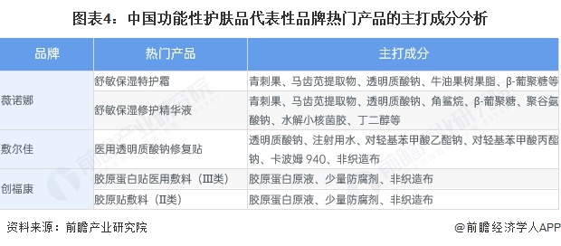 但就“械字号”医美级护肤品而言,以创福康的明星产品Ⅱ类及Ⅲ类胶原贴辅料为例,其成分仅为胶原蛋白原液及少量防腐剂,敷尔佳的产品医用透明质酸钠修复贴仅包含五种成分,械字号的成分更为聚焦。