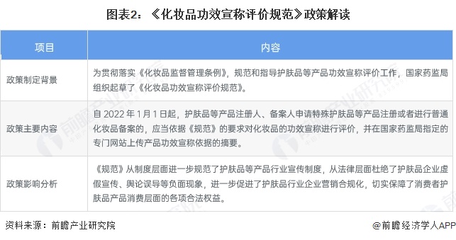 国家药监局于2021年4月出台与《化妆品监督管理条例》相配套的《化妆品功效宣称评价规范》措施,进一步规范和指导国内护肤品等产品的功效宣称评价工作,从法律层面约束了化妆品相关企业虚假宣传、舆论误导等化妆品行业乱象。政策具体解读如下: