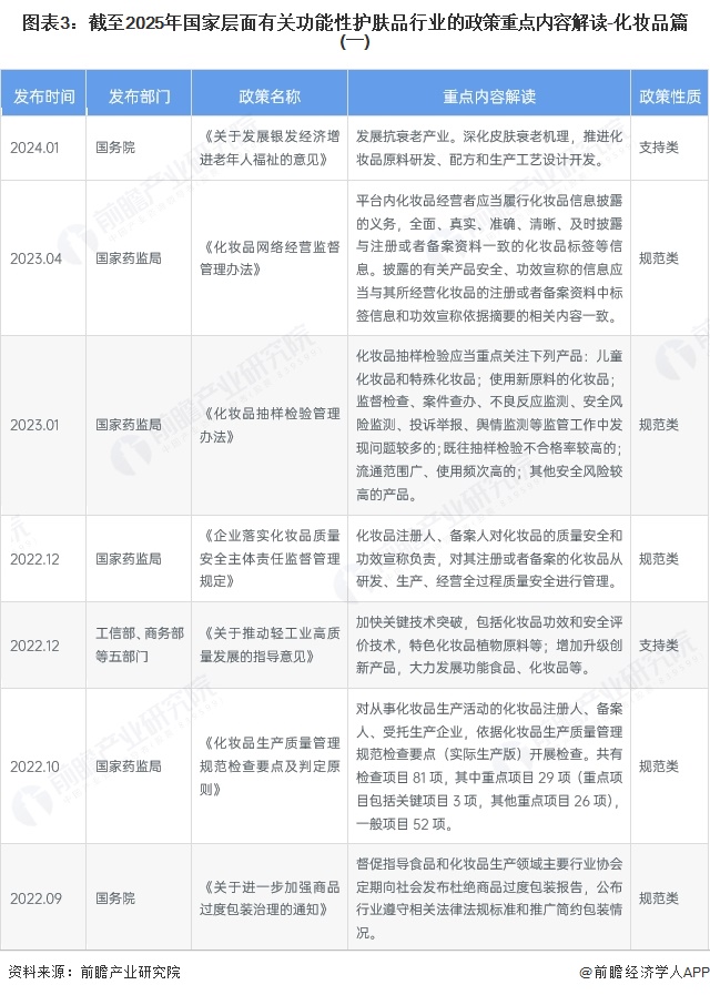 (原标题:重磅!2025年中国及31省市功能性护肤品行业政策汇总及解读(全))