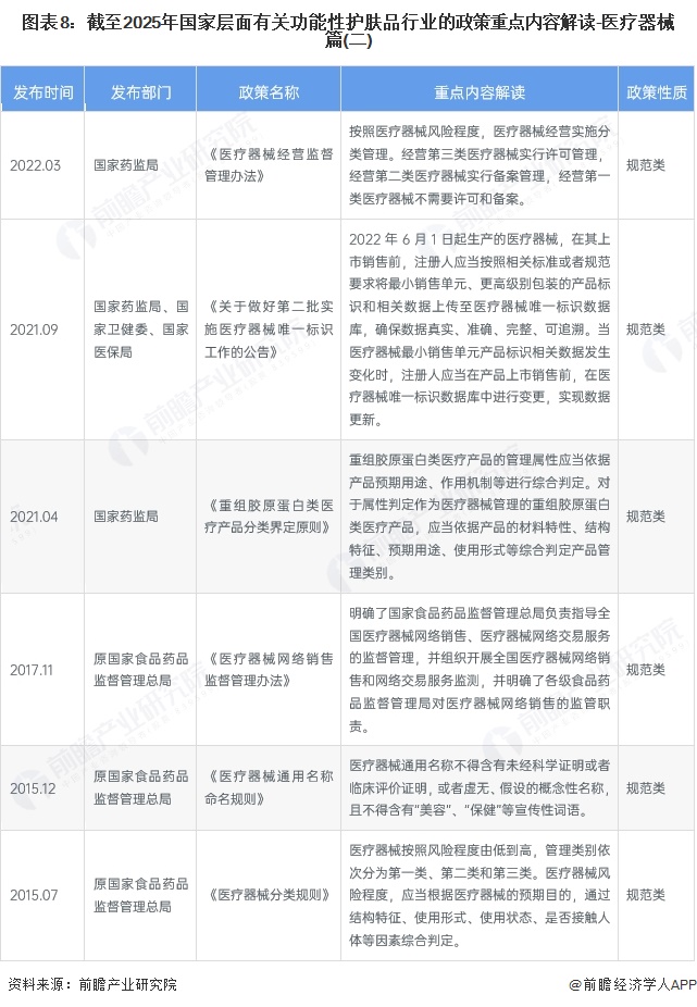 ——国家层面功能性护肤品行业政策汇总-医疗器械篇
