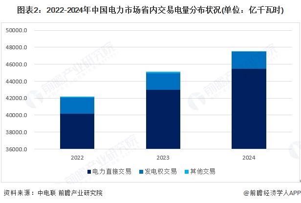 2、中国省内电力交易规模及结构——电力直接交易占比高
