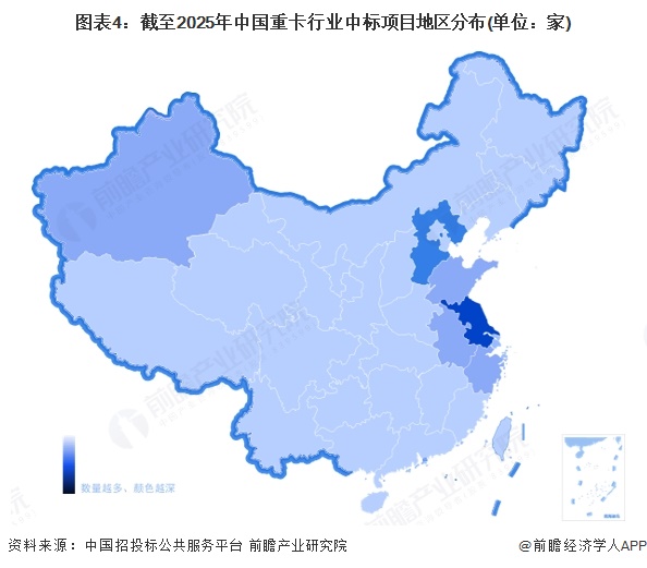 4、中国重卡行业招投标项目主要分部在江苏省、河北省等地