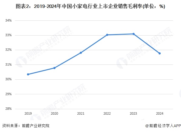 从小家电行业销售毛利率情况来看,行业销售毛利率均值稳定在30%-35%,整体呈现增长趋势,2024年有所下滑,约为31.78%。态势反映出行业整体发展较为稳健,企业通过技术升级、成本控制及产品结构优化等手段,稳步提升盈利空间。比如部分头部企业加大研发投入,推出多功能、智能化产品,在提升产品附加值的同时,合理控制生产成本,使得毛利率逐步上扬。