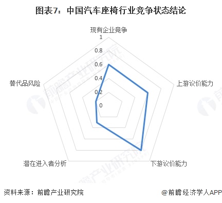 根据以上分析,对各方面的竞争情况进行量化,1代表最大,0代表最小,汽车座椅行业的竞争情况如下图所示: