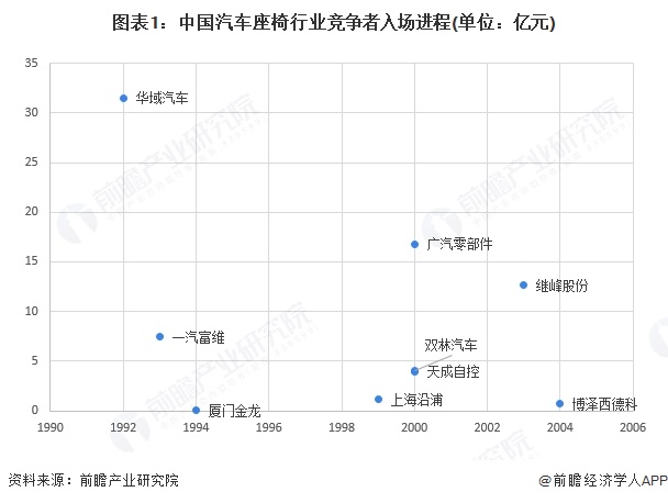 从中国汽车座椅行业竞争者入场进程来看,华域汽车系统股份有限公司自20世纪90年代初最早进入汽车座椅行业;其他企业布局进入汽车座椅行业的时间较多集中在2000年前后。从注册资本规模来看,华域汽车注册资本较高,超过30亿元。