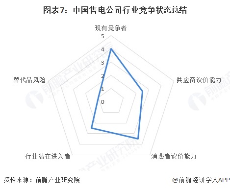 根据以上分析,对各方面的竞争情况进行量化,5代表最大,0代表最小,目前我国售电公司行业五力竞争总结如下: