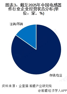 根据企查猫查询数据显示,从注册企业经营状态来看,截至2025年8月,中国电感器件行业的存续/在业企业3.2万家,占总企业数的84%;注销/吊销企业数量5千余家,占总企业数的15%。总体上看,中国电感器件行业企业经营情况良好,在业/存续企业数量占比相对较高。