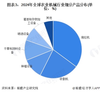 全球农业机械行业细分产品分布:拖拉机细分占据主导地位
