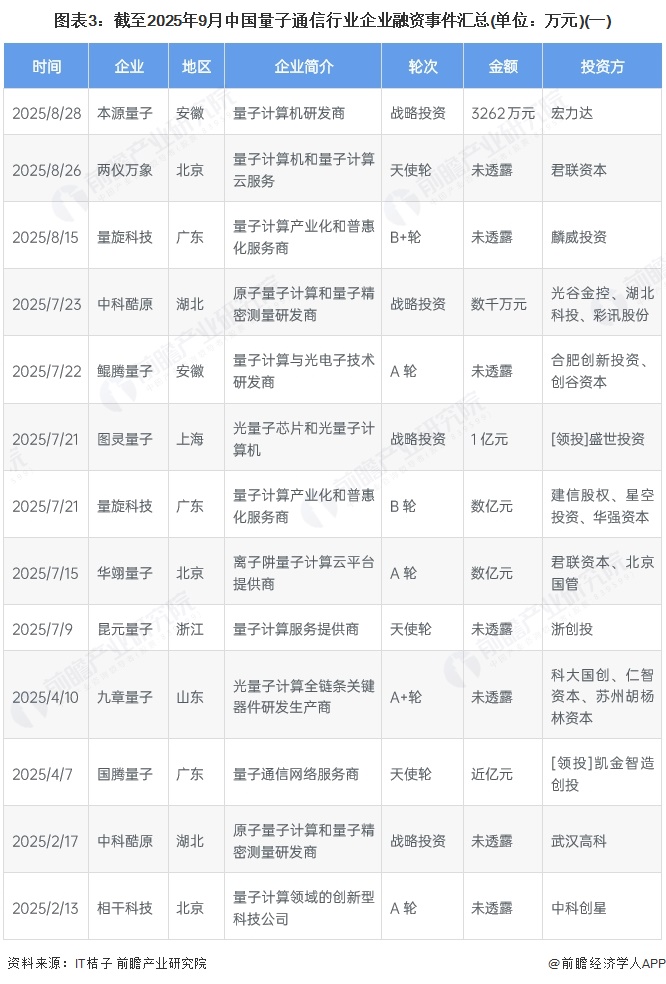 (原标题:【投资视角】启示2025:中国量子通信行业投融资及产业基金分析(附投融资事件、产业基金等))