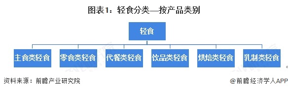 轻食主要指低糖、低脂、低盐且富含高纤维、营养素密度高的食物。根据产品的类别划分轻食被分为六类:主食类轻食、零食类轻食、代餐类轻食、饮品类轻食、烘焙类轻食和乳制类轻食等。
