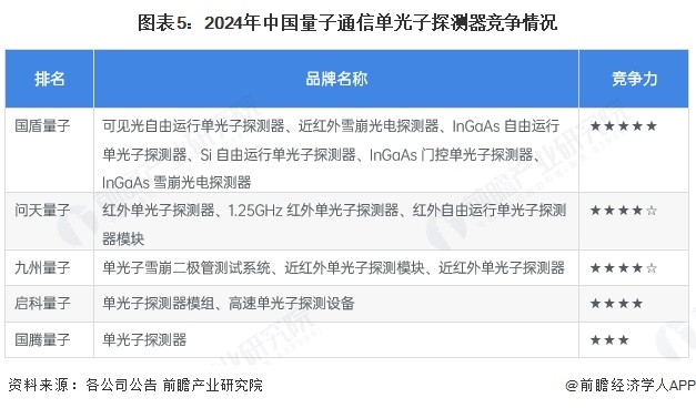 目前,中国单光子探测器的供应商主要有:国盾量子、问天量子、启科量子、国腾量子、九州量子等。