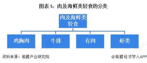肉及海鲜类轻食可划分为:鸡胸肉、牛排、鱼肉以及虾类轻食。