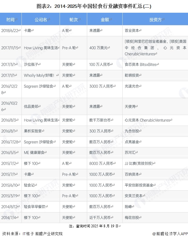 (原标题:【投资视角】启示2025:中国轻食行业投融资及兼并重组分析(附投融资事件、产业基金和兼并重组等))