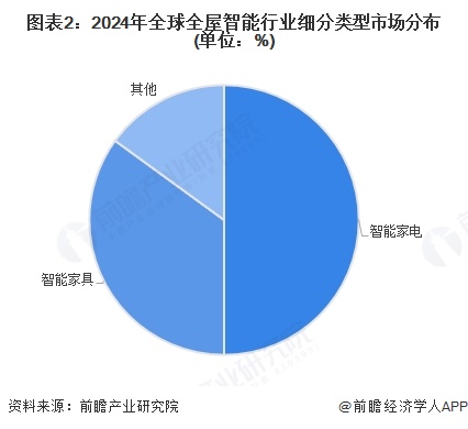 全球全屋智能行业细分类型中智能家电市场份额高达50%