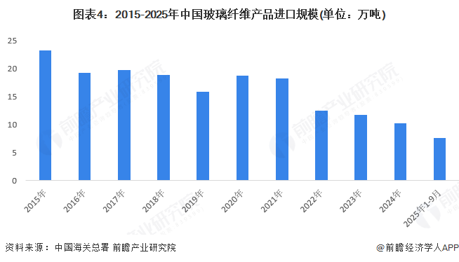 ——中国玻璃纤维进口规模呈现波动下降趋势