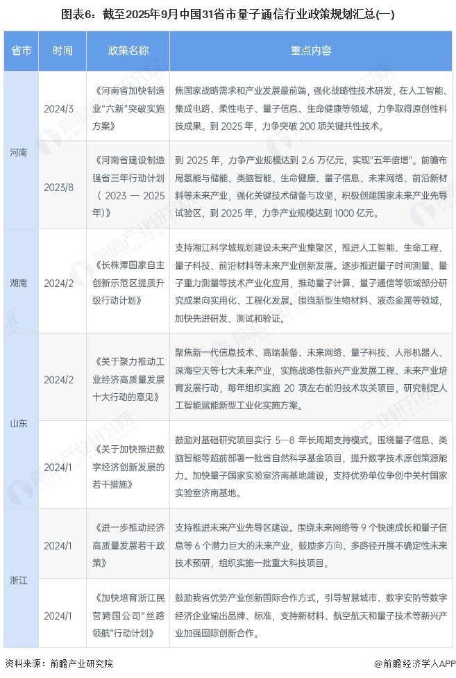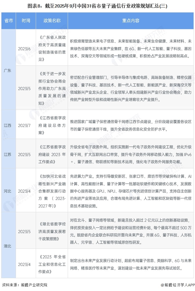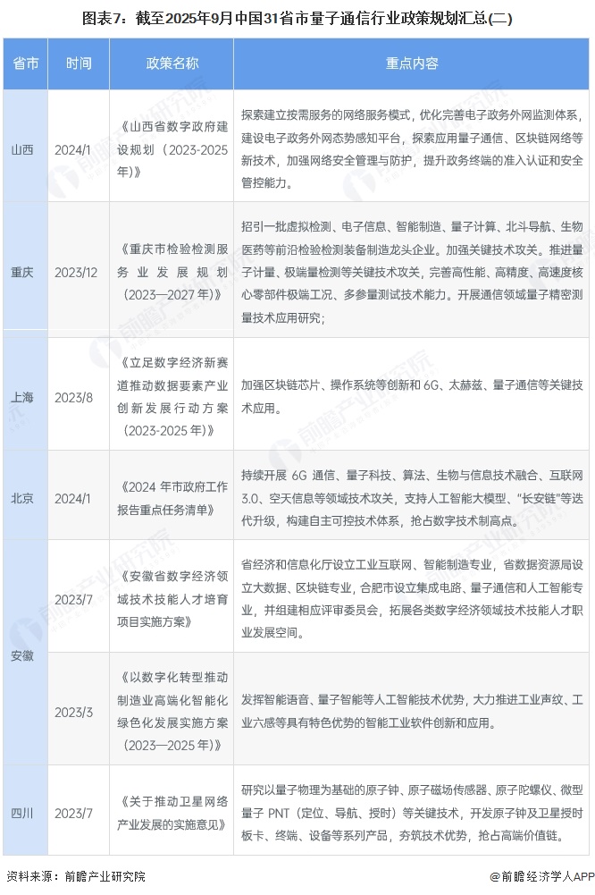 (原标题:重磅!2025年中国及31省市量子通信行业政策汇总及解读(全)政策为量子通信关键技术突破提供良好支持)