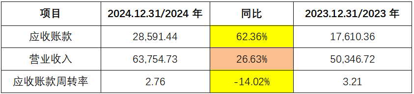 另一方面,标的公司报告期内还存在应收账款高企,其规模增速远超同期营收增速的情况。截至2024年底,标的公司应收账款的账面价值已高企至28,591.44万元,同比增长高达62.36%。对此上市公司表示,其增长原因主要为标的公司2024年业务规模有所提升导致。但从其全年营业收入增长情况来看,标的公司2024年营收同比增速则为26.63%,其远远低于公司应收账款规模增速,两者之间的匹配度明显较低。