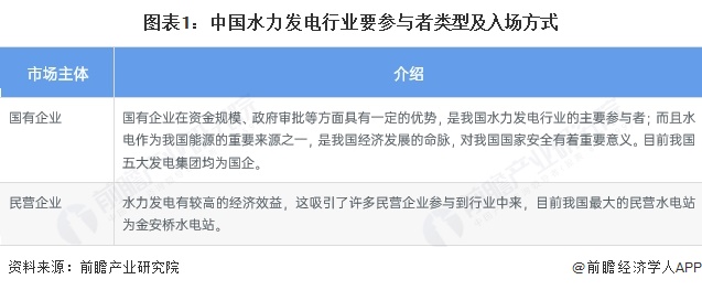 目前我国水力发电行业主要的市场主体包括国有企业和民营企业。