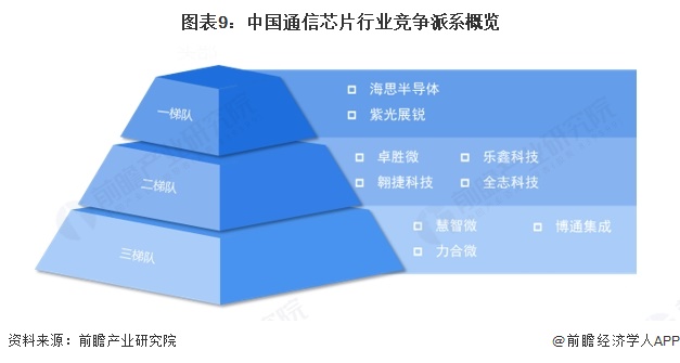 综合从技术实力、市场影响力、产业链地位和核心竞争力等方面综合判断,我国通信芯片行业可以分为三个梯队。第一梯队企业是国内通信芯片行业的领军者,如海思半导体、紫光展锐,具备全链条研发能力或在核心细分领域达到全球领先水平,不仅能与国际巨头同台竞争,还在技术标准制定、专利布局上拥有话语权,产品覆盖高端终端和核心通信设备。第二梯队企业有卓胜微、乐鑫科技等,这类企业聚焦通信芯片特定细分赛道,如射频、光通信等,已实现核心技术突破和规模化量产,在国内市场占据较高份额,部分产品性能接近国际水平,是国产替代的主力,同时借助资本市场或产业链协同持续扩大竞争力。第三梯队主要是规模相对较小的创新企业,聚焦更细分的小众赛道或新兴技术方向,虽规模较小、营收有限,处于技术迭代和市场拓展的成长阶段,是通信芯片行业的新生储备力量。