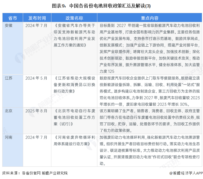 (原标题:重磅!2025年中国及31省市电池回收行业政策汇总及解读(全) 完善电池回收利用标准及体系)