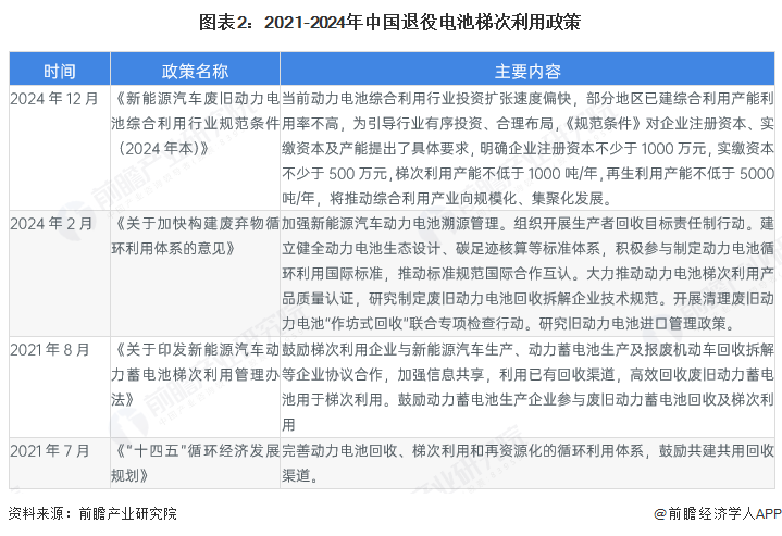 2021年以来,国家发布《“十四五”循环经济发展规划》《关于印发新能源汽车动力蓄电池梯次利用管理办法》等政策,鼓励电池梯次利用,加快构建电池体系利用体系。主要政策汇总如下: