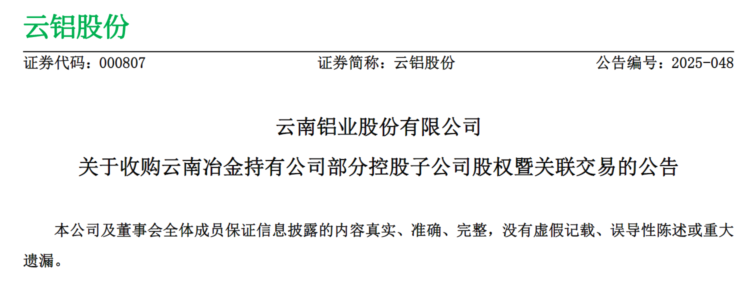 图片说明:云铝股份资产收购公告