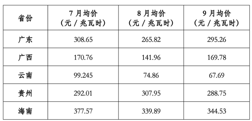 图片说明:2025年南方五省7-9月现货均价情况,数据来源于电力交易中心、国能日新微信公众号