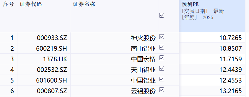 图片说明:电解铝企业2025年估值对比,数据来源于同花顺