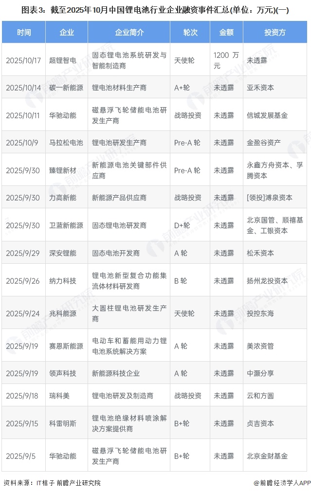 (原标题:【投资视角】启示2025:中国锂电池行业投融资及兼并重组分析(附投融资事件、产业基金和兼并重组等))
