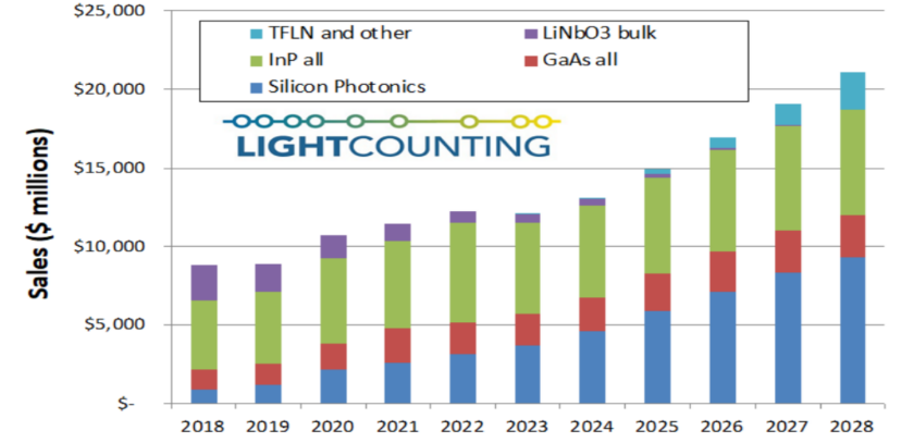 图片说明:硅光模块的市场份额有望大幅提升,数据来源于LightCounting