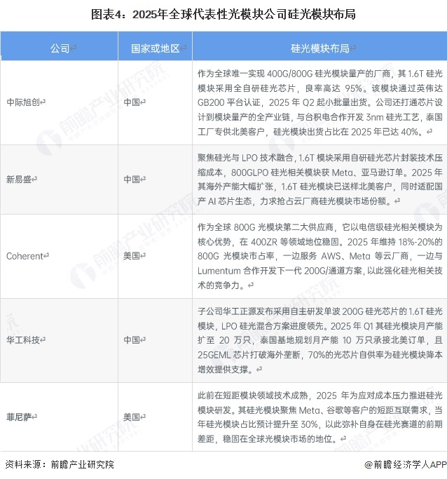 2025年全球代表性光模块企业聚焦1.6T硅光模块布局,中美企业各有侧重。中国中际旭创实现400G/800G硅光量产,1.6T模块通过英伟达认证并小批量出货,硅光出货占比达40%;新易盛融合硅光与LPO技术,获海外云厂商订单;华工科技推自研芯片1.6T模块,产能与光芯片自供率领先。美国Coherent以电信级产品为核心,维持800G高市占率并布局下一代技术;菲尼萨发力短距硅光模块,目标占比提升至30%,中外企业均瞄准北美云厂商与AI生态需求。