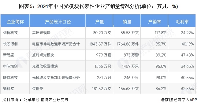 中国光模块企业产销量排名