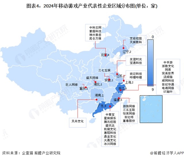 移动游戏产业链区域热力地图:广东分布最集中