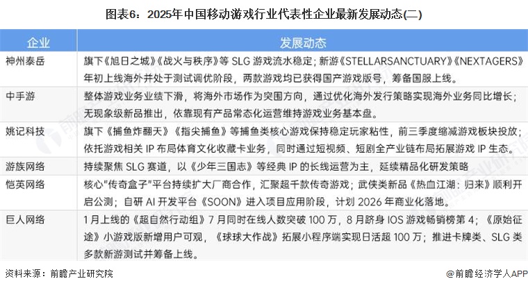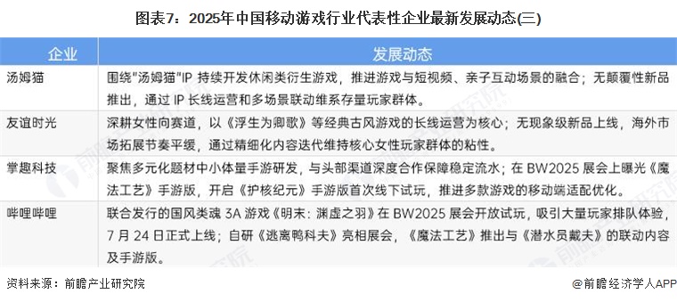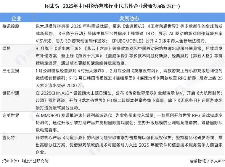 截至2025年11月,移动游戏行业代表性企业最新发展动态如下: