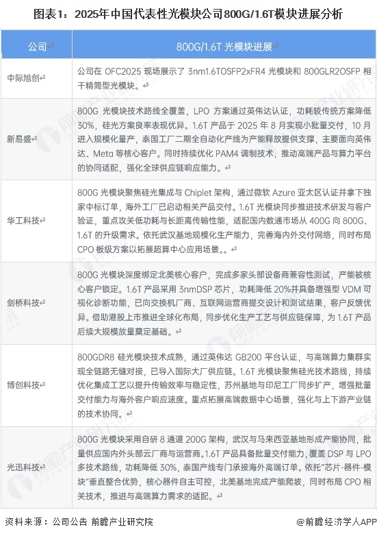AI算力扩张与“东数西算”等政策推动下,800G和1.6T光模块正迎来高速发展期。技术层面,头部企业已形成多元成熟路线,800G产品覆盖硅光、LPO等方案,通过自研芯片、Chiplet架构实现低功耗与高兼容性,且完成英伟达、微软等头部客户认证并规模交付;1.6T产品加速从试产转向量产,多采用先进DSP芯片或无DSP设计,功耗持续优化,部分已通过高端算力平台认证。产能端,企业纷纷布局海内外生产基地,强化供应链协同与批量交付能力,同时同步攻关CPO等前沿技术。多重利好下,800G成为当前主流需求,1.6T快速崛起,行业整体朝着更高速率、更低功耗、更优成本的方向加速演进。
