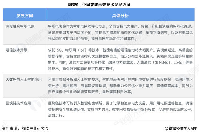 中国智能电表技术发展主要以深度融合智能电网、通信技术升级、大数据与人工智能应用以及区块链技术应用四个方向为主。
