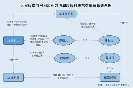 在此背景下,2019-2021年,同名“陈祖元”曾任远程股份子公司宜兴远辉负责人。另一方面,益聚贸易为滆湖度假村持股10%的股东。蹊跷的是,2020-2024年,远程股份子公司远程新材与益聚贸易共用联系电话。此外,益聚贸易的实控人为殷凤保。巧合的是,同名的“殷凤保”曾任远程股份监事。基于上述情形,远程股份子公司或与其房屋出租方的股东现经营混淆异象。