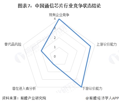 根据以上分析,对各方面的竞争情况进行量化,5代表最大,0代表最小,通信芯片行业的竞争情况如下图所示: