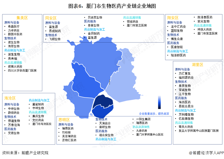 以下数据及分析来自于前瞻产业研究院生物医药研究小组发布的《厦门市生物医药产业大数据招商指南(两链两图两库两清单)》。