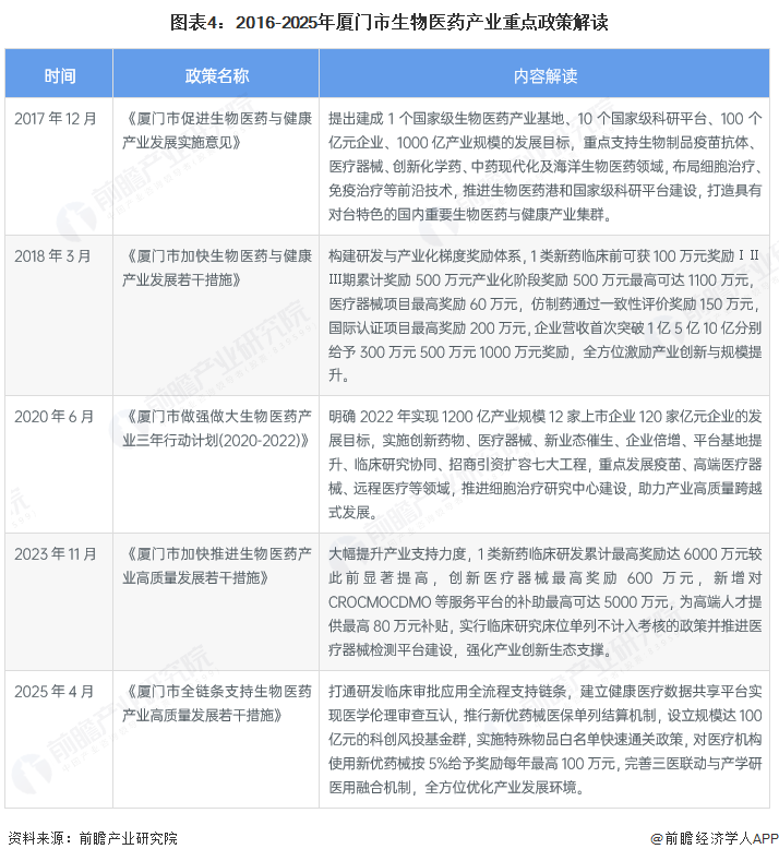 厦门市生物医药产业发展前景及规划(量化政策目标/定性发展规划内容)