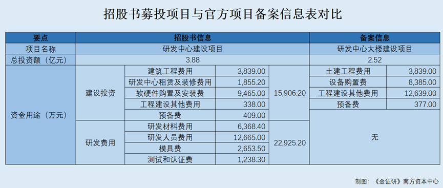 奇怪的是,招股书披露的研发中心项目总投资额与官方项目备案信息或“对不上”。