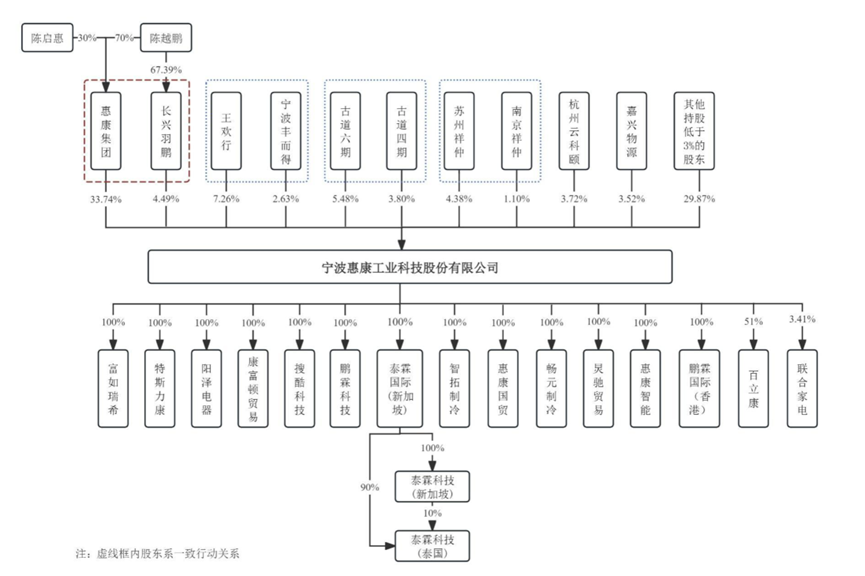 在股改之前,陈启惠一直担任宁波惠康工业科技股份有限公司(以下简称“惠康科技”)董事一职,2025年3月,惠康科技聘请陈启惠作为公司顾问。而回溯历史,从无设备、无技术、无厂房的“三无”工厂起家,系陈启惠带领惠康科技在家用制冰领域突围。此次上市,陈启惠的儿子陈越鹏系惠康科技的实控人,惠康科技被问询陈越鹏所持股份权属是否清晰、股权是否稳定,说明未将陈启惠认定为实际控制人的原因及合理性。