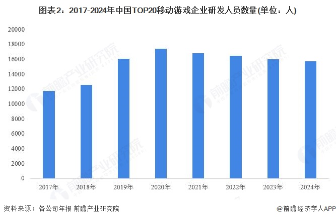 中国TOP20移动游戏企业研发人员数量占比超65%