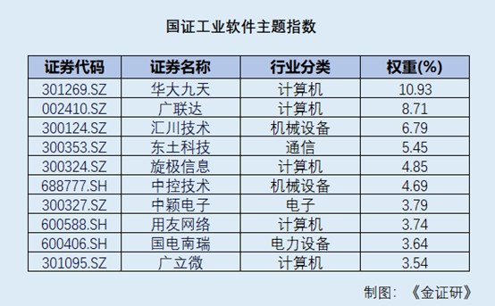 截至2026年1月21日,该指数前十大权重分别为华大九天、广联达、汇川技术、东土科技、旋极信息、中控技术、中颖电子、用友网络、国电南瑞、广立微,合计占比56.13%。